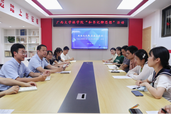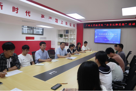 “大家就业进展如何?有没有遇到什么困难?”覃书记逐一了解研究生们的就业进展和实际困难。“林场和选调生是我目前的选择,也是我最难的一个抉择。”2023届风景园林研究生吕佳峻提出了自己的困惑。覃书记鼓励他说,我们是william威廉中文官网的研究生,我们肩负着乡村振兴的重任,人生只有一次青春,青春就应该拿来奋斗。我们林科学子更应该继承“自找苦吃”的精神,只有吃过苦,才能真的懂得了什么叫实际,什么叫实事求是,要坚持多学多干,多到艰苦的地方锻炼自己。2023届生态学研究生梁嘉玲表示自己一心想扎根防城建功立业的决心,但是很遗憾没有考上选调生。但是她会在西部计划、三支一扶的报考中继续努力。其他同学们也畅所欲言,覃宪儒书记结合当前员工关心的“职业选择”、“职业发展”“应试技巧”等问题进行一一讲解与答疑,让同学们能够更好地结合自身实际特点将个人理想追求融入党和国家的发展事业中去。覃书记强调,大家是与新时代共同前进的一代,更是新时代的亲历者、见证者和奋斗者,希望大家牢记党的嘱托,不辱使命、不负时代,脚踏实地,学好本领,立志做有理想、敢担当、能吃苦、肯奋斗的新时代好青年,让青春在全面建设社会主义现代化国家的火热实践中绽放绚丽之花。