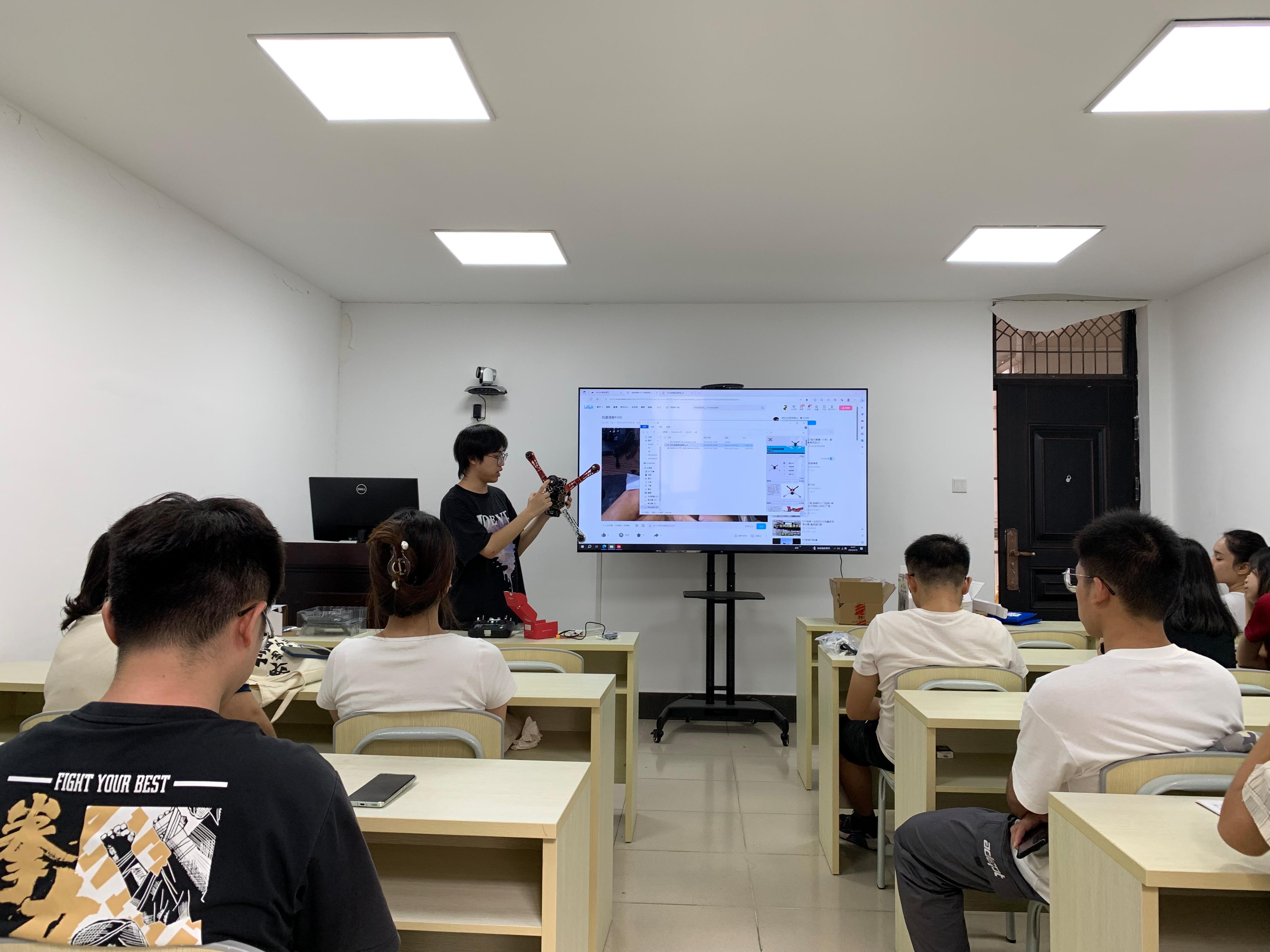 活动伊始,林学211班陈斌同学向小组成员详细介绍了无人机的分类、组成、发展以及应用等,同学们聚精会神地倾听,并利用专业工具如火如荼的开展无人机组装与拆卸活动。
