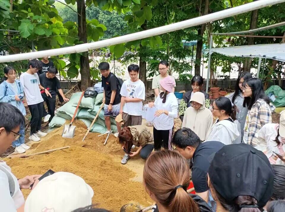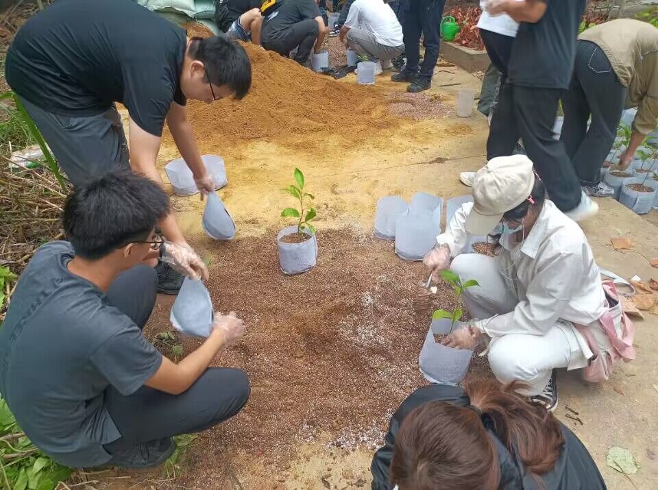 现场,班主任徐圆圆老师带领同学们参观教学实习基地苗圃,向同学们详细讲解了苗圃的组成以及容器苗培育的关键技术。紧接着,公司2023级生态学博士研究生马道承向同学们介绍苗木种类、育苗容器和基质选择,并亲身示范育苗基质的配制及观光木容器苗的换盆移栽过程。同学们听得饶有兴致,以小组为单位,争先恐后的参与到“容器苗培育—观光木苗木换盆移栽”劳动实践活动中。