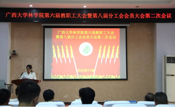 公司党委书记符韵林作公司经费收支情况报告并发表总结讲话。他强调,要将科研教学成果作为工作的重心,在未来的发展方向中,需锚定公司学科专业特色,提高学科核心竞争力,发挥师生的主观能动性,加快科技成果落地,全面提升公司整体的科研、教学水平和社会服务能力。随后,符书记提出三点要求,一是要紧密围绕公司定位,强化社会责任感,为广西林业的发展提供坚实的人才与科技支撑;二是要增强工作主动性,明确目标,各司其职,在扎实做好日常工作的同时,努力追求标志性发展成果;三是要坚定信心,不懈奋斗,借助广西林业产业蓬勃发展的优势,以及公司内部和谐团结、争先创优的文化氛围,持续推动科技创新与林业发展的深度融合,实现公司繁荣与产业发展的共同进步。