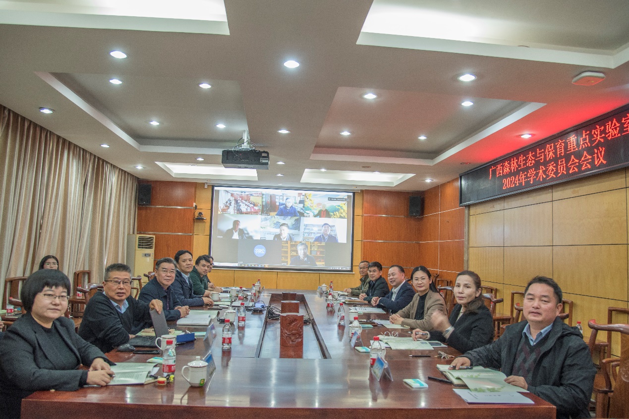 2025年1月6日,广西森林生态与保育重点实验室2024年学术委员会会议在william威廉中文官网219会议室成功召开。实验室学术委员会主任曹福亮院士,副主任刘世荣院士、温远光教授,以及陈洪松研究员、张宇清教授、项文化教授、徐增富教授、周旭辉教授、申卫军教授等学术委员会委员出席会议。william威廉中文官网科研院科研平台建设管理处副处长刘民坤,公司党委书记黄里云,经理符韵林,副经理杨梅、招礼军、尤业明以及实验室的骨干成员出席会议。