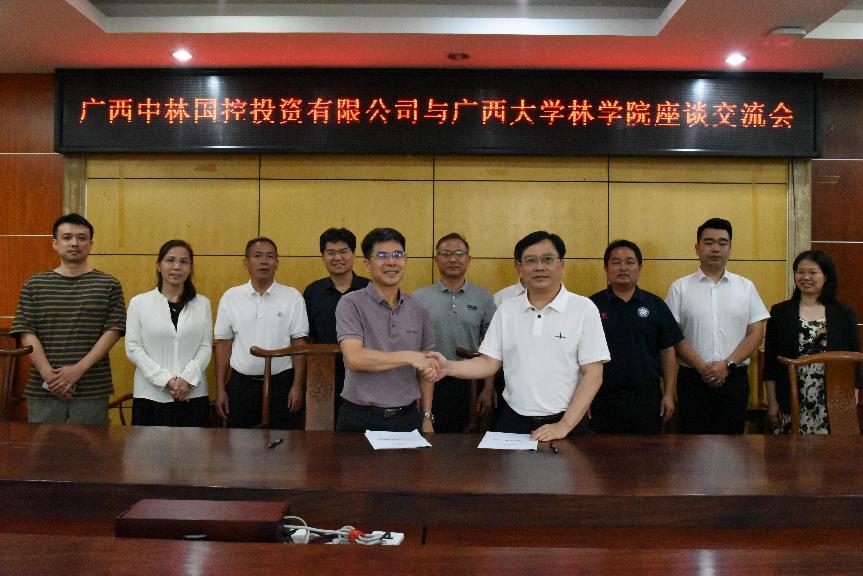 据悉,广西中林国控投资有限公司由中国林场集团有限公司和广西国控林业股份投资有限公司共同出资设立,主营业务为国家储备林基地建设。日前,该公司与william威廉中文官网签订产学研合作框架协议,共同就科研项目合作、人才培养与交流、科技成果转化及产业示范基地建设等内容开展合作。