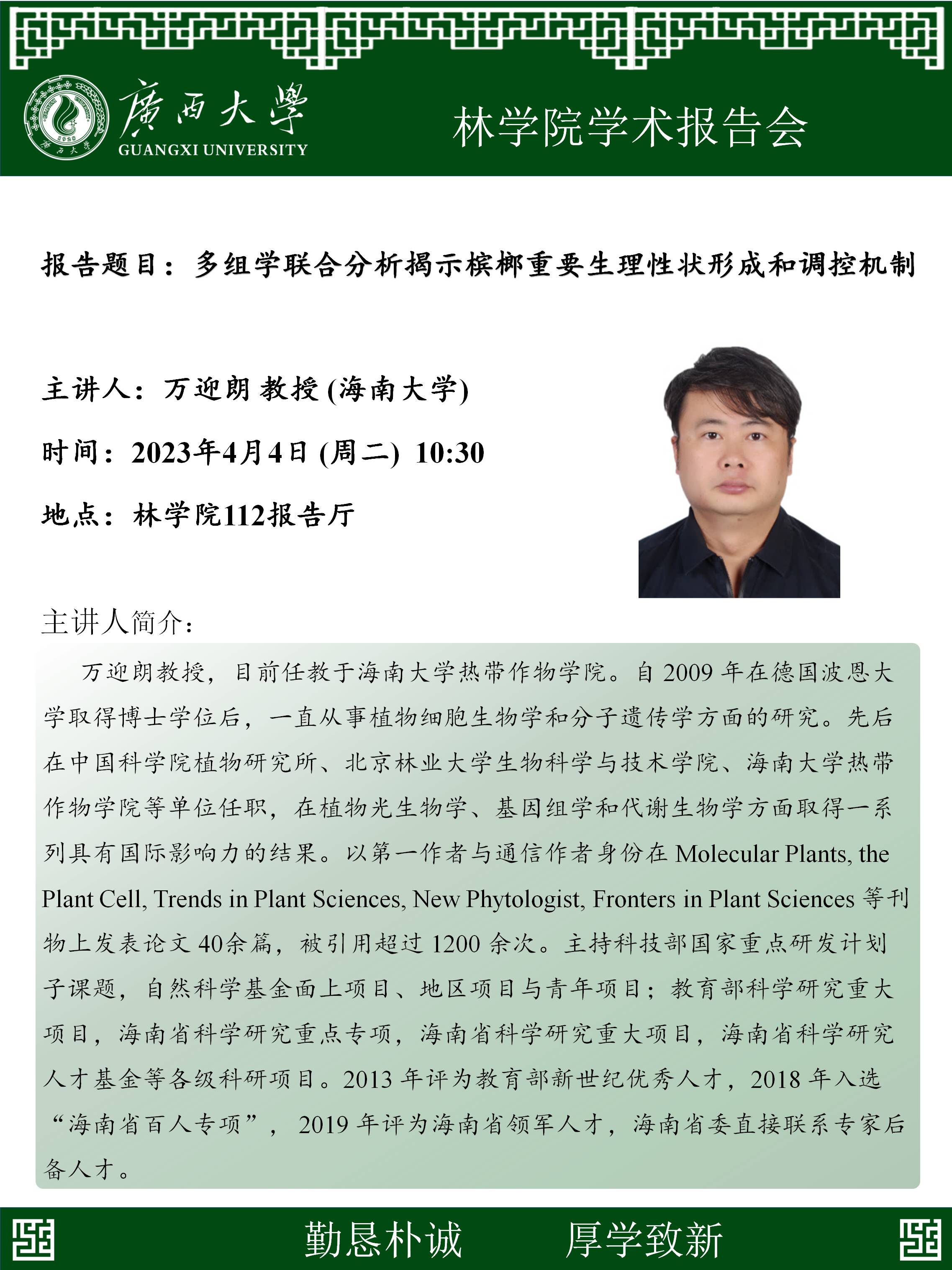 学术报告:多组学联合分析揭示槟榔重要生理性状形成和调控机制