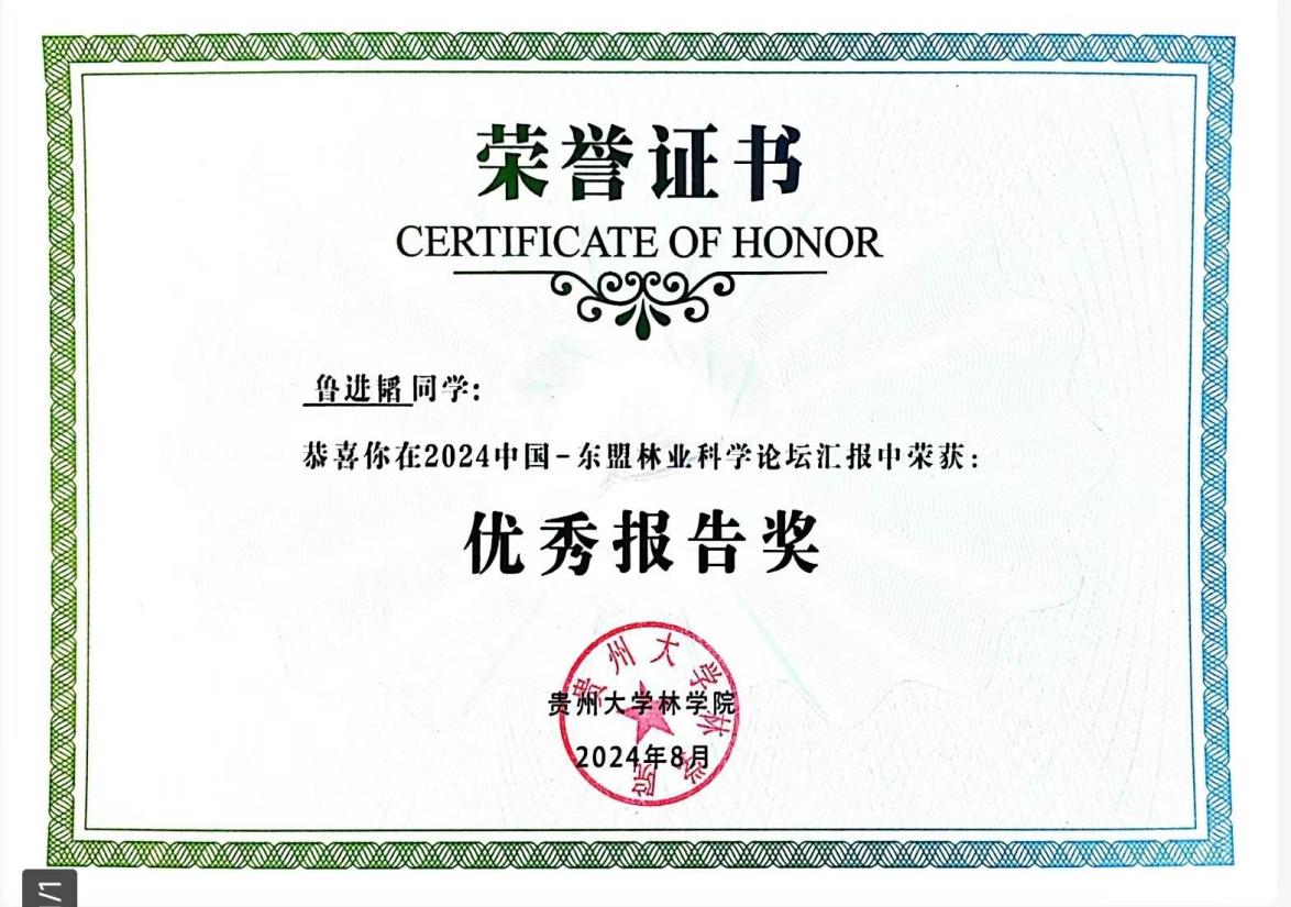 • 公司博士研究生鲁进韬参加“中国-东盟林业科学论坛”学术交流活动并获优秀报告奖