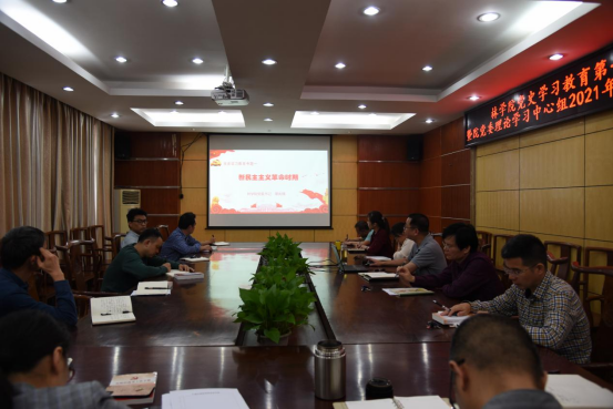 随后,党委书记覃宪儒为全体与会同志讲授《新民主主义革命时期》党史学习教育专题党课。覃书记着重梳理了新民主主义革命时期的历史发展脉络,带领党员干部重温中国共产党的创立、第一次国共合作与大革命的失败、轰轰烈烈的土地革命、艰苦卓绝的长征、第二次国共合作的事件发展经过,回顾了中国共产党在新民主主义革命时培育的一系列体现时代要求、彰显政党性质、凝聚革命力量的伟大革命精神。并强调,开展党史学习教育是今年一项重大政治任务,各支部要把学习党史同总结经验、观照现实、推动工作结合起来,坚持从党史学习教育中汲取智慧力量,把学史成效转化为干事创业的强大动力。
