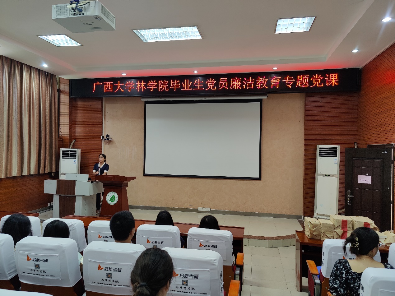 最后,徐丽老师寄语全体毕业生党员,希望毕业生党员把廉洁作为一种生活方式、一种思想品质,争做廉洁之人、守法之人、正派之人、高尚之人、诚信之人,不断发扬党员优良作风,争做有信仰、有担当、有作为的新时代好党员。