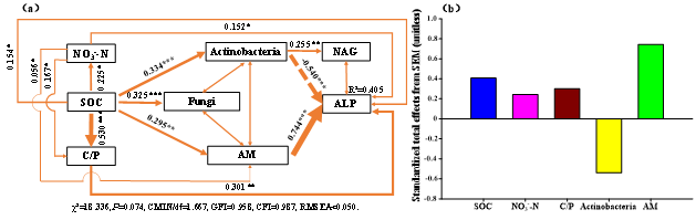 图2调控土壤P转化(ALP表征)的结构方程模型