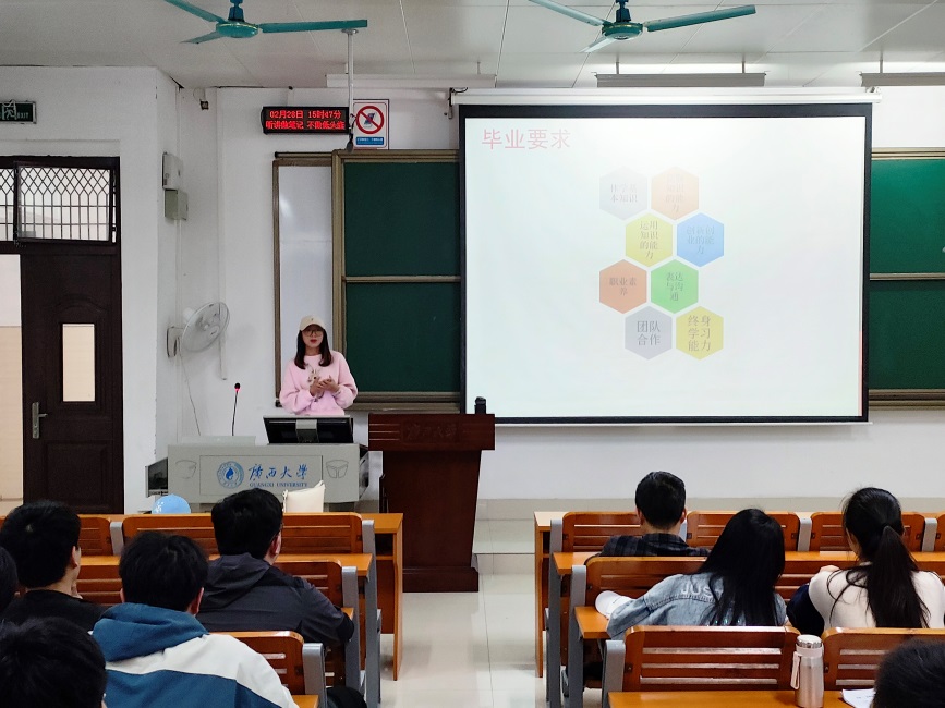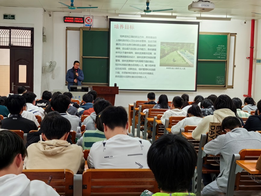 2月28日下午,2021级林学类本科分流专业介绍会在6B-101召开。会议由副经理符韵林教授主持,符老师就林学和生态两个专业未来的发展前景向同学们进行了介绍。随后由林学专业程飞老师和蒋维昕老师分别就林学专业概况、就业前景、人才培养目标、课程体系和毕业要求等方面向同学们做介绍,并现场回答了同学们所关心的问题。